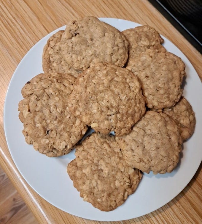 I made a batch of cookies last weekend. I was in the mood for doing something other that doomscrolling on my phone for a change, so I found a new recipe that would make use of some of the sourdough starter I’d accumulated and made a batch of Sourdough Oatmeal Cookies (gluten-free, because that’s how I roll.) I threw in some chopped walnuts, for extra texture. And when they were done, I marveled at how well they’d turned out.